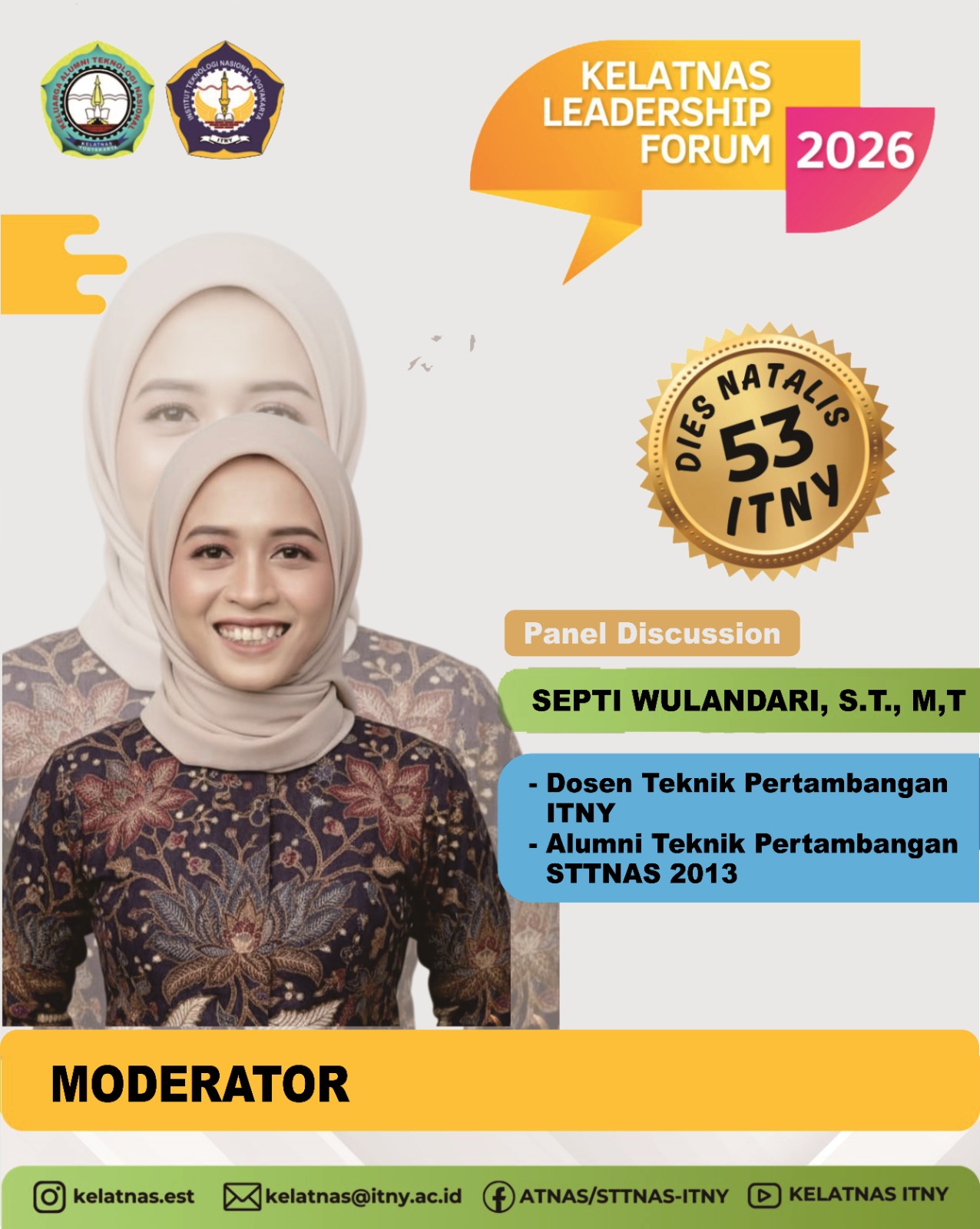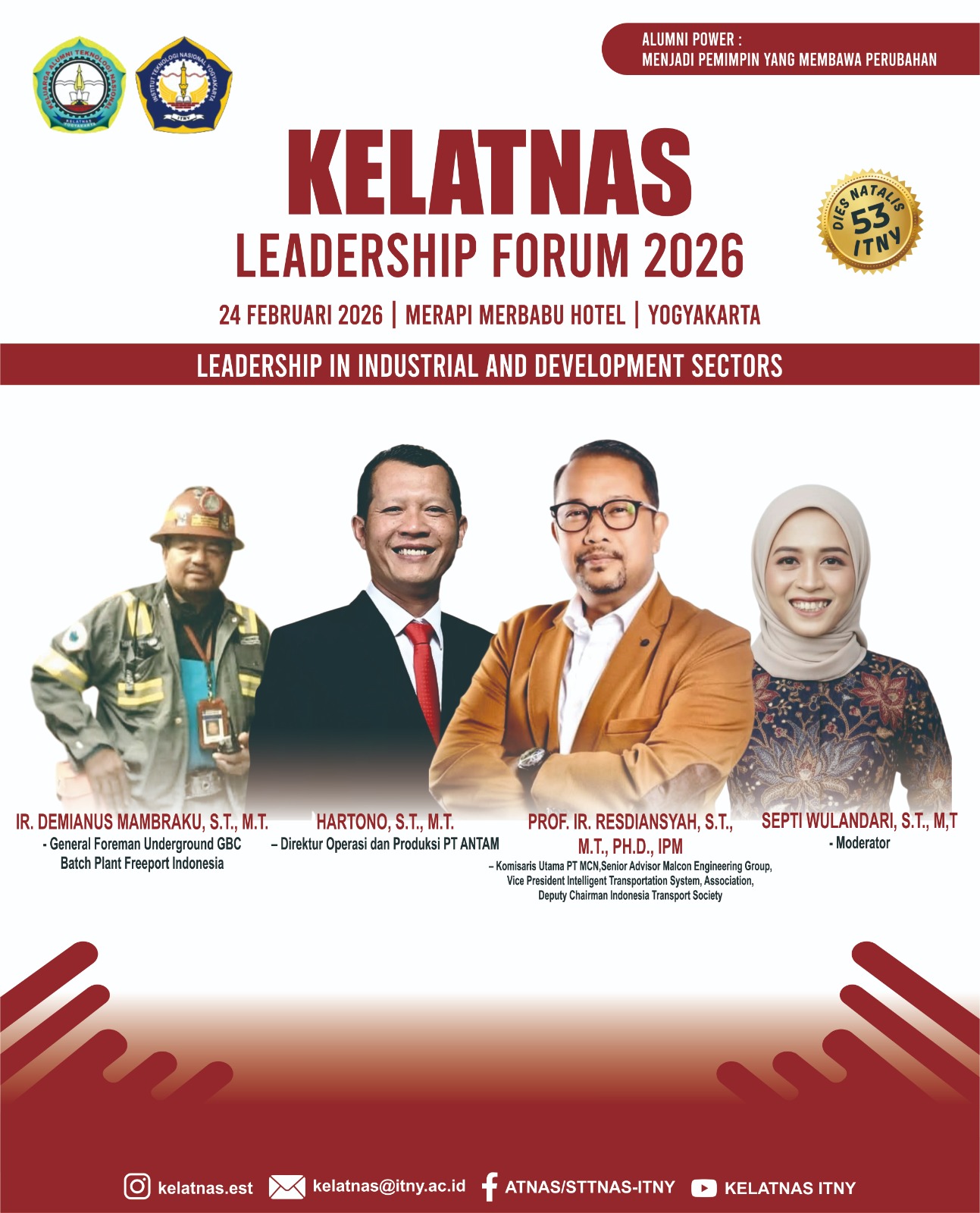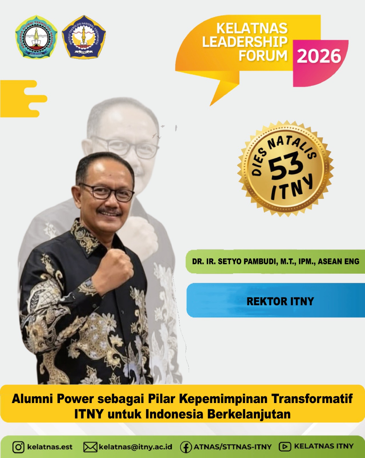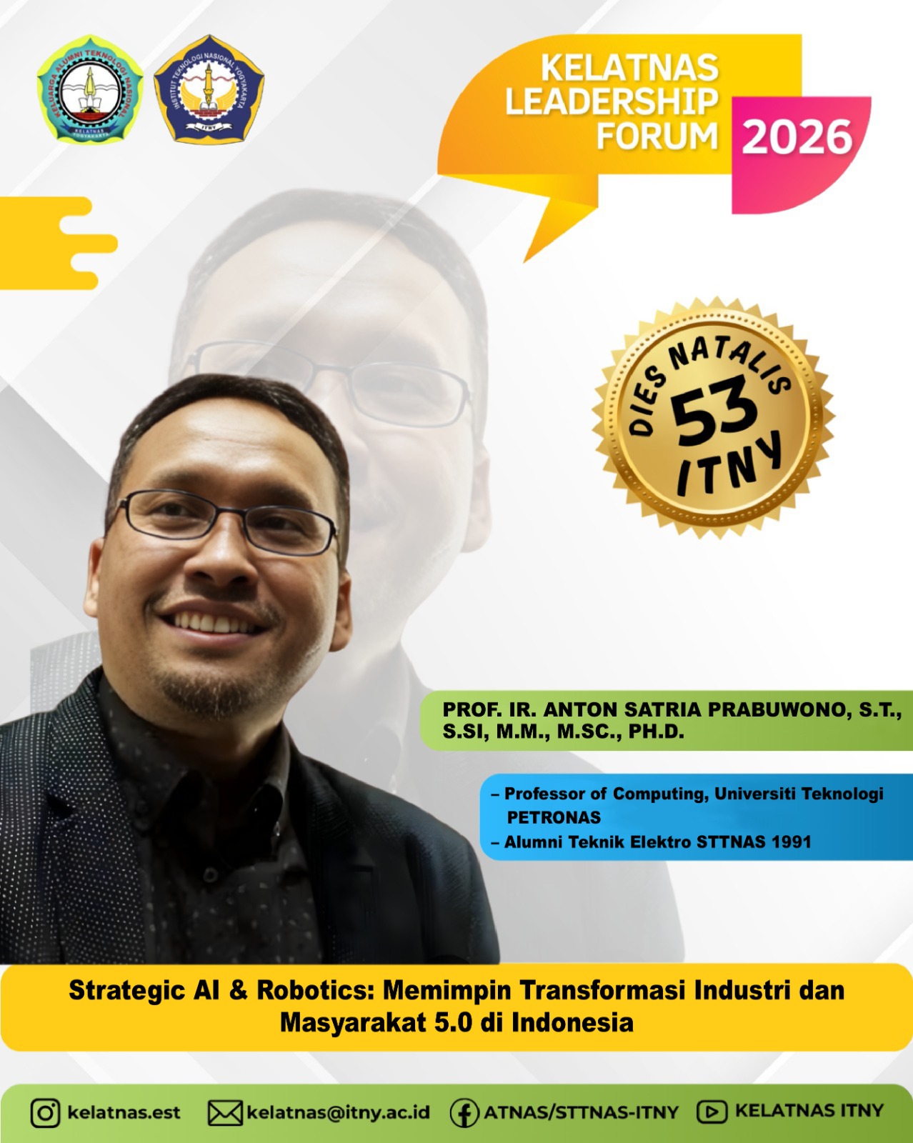 Dalam rangka merayakan 53 Tahun Langkah ITNY, Kelatnas(Atnas-Sttnas-ITNY) mempersembahkan sebuah forum istimewa yang mempertemukan para pengambil kebijakan dan raksasa industri dari almamater kita.